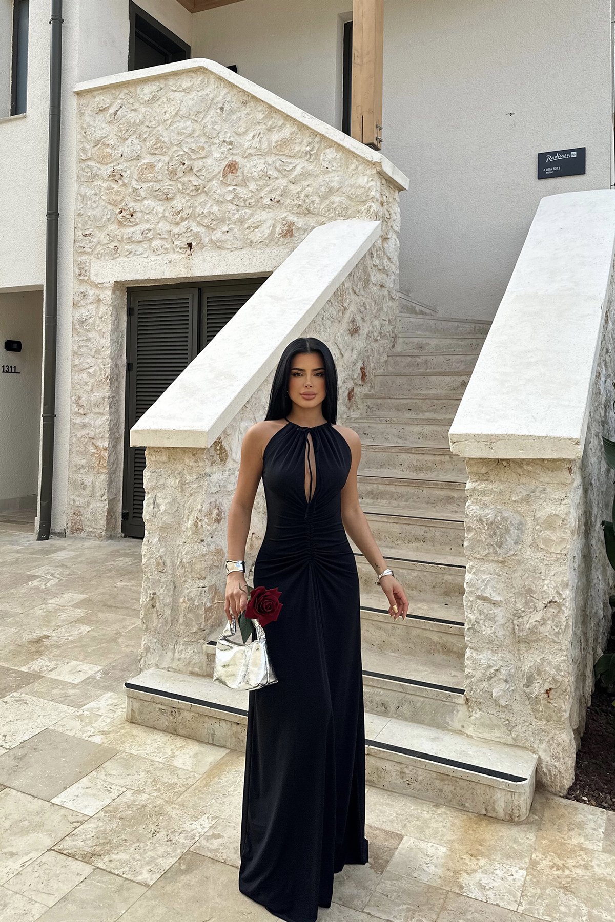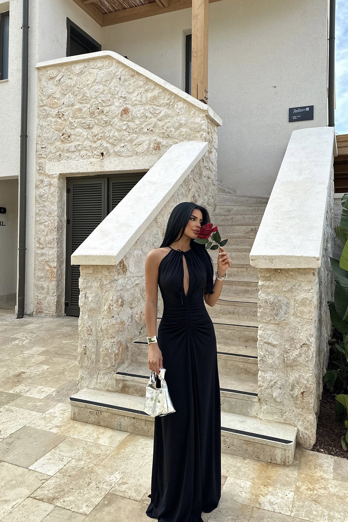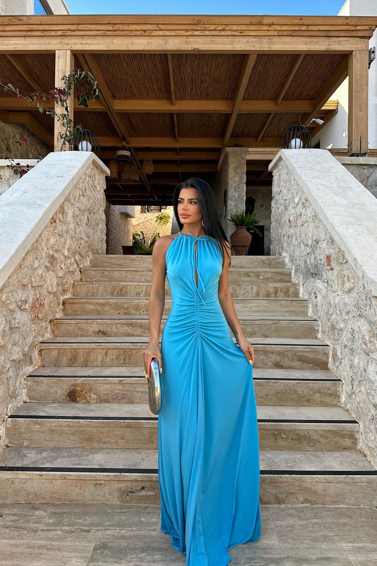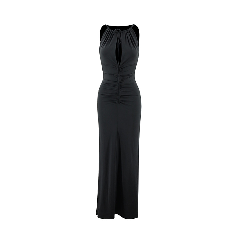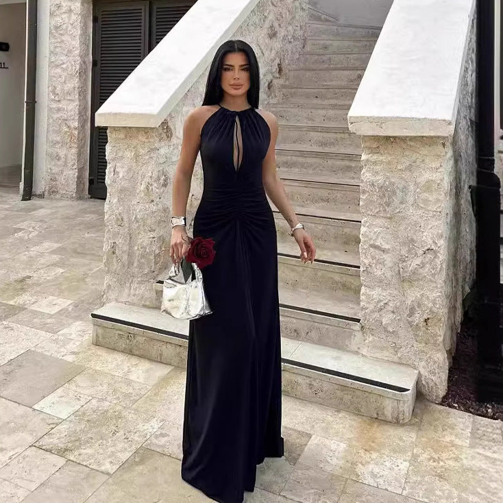 A Long Dress With A Pleated Design That Creates A Slimming Figure-flattering Look