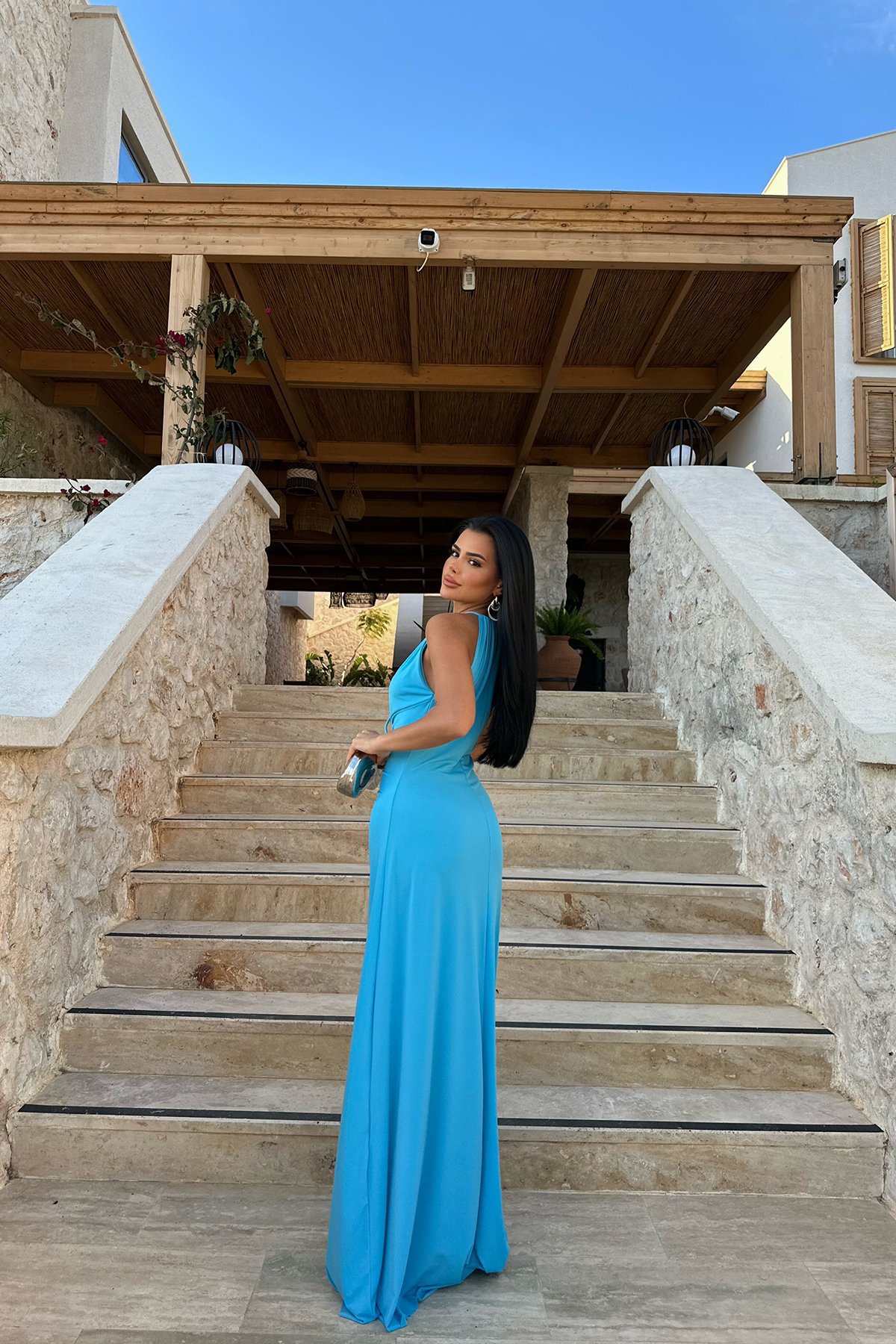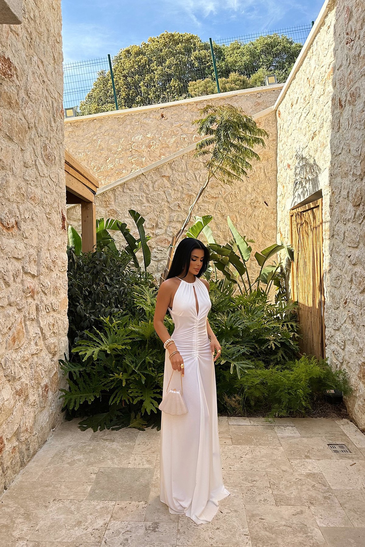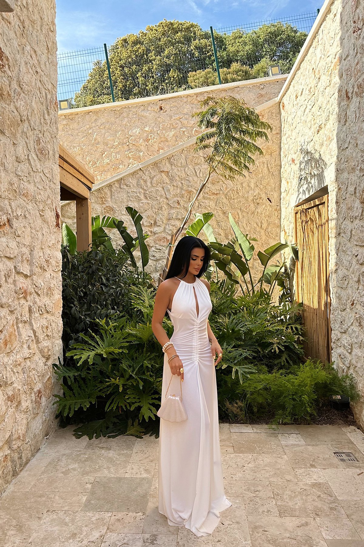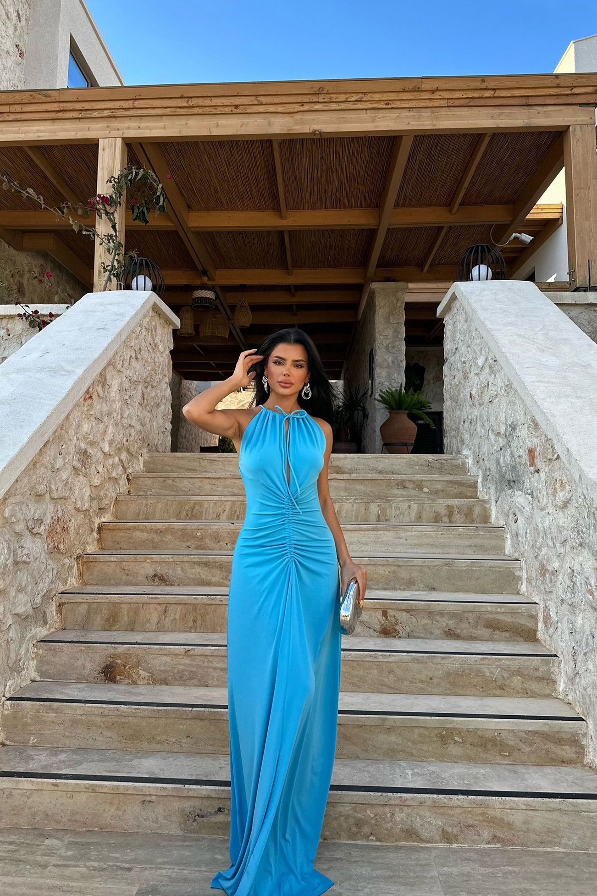 A Long Dress With A Pleated Design That Creates A Slimming Figure-flattering Look